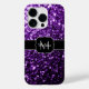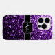 Dark Purple faux shiny glitter sparkles Monogram Case-Mate iPhone Case