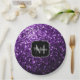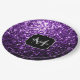 Dark Purple faux shiny glitter sparkles Monogram Paper Plate