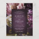 Elegant budget wedding invitation flyer featuring a dark purple floral theme. The moody color palette is great for a fall wedding. Use the template to add a photo and generate a QR code or remove either in the design editing tool.