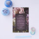 Elegant wedding menu flyer featuring a dark purple floral theme. The moody color palette is great for a fall wedding.
