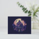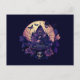 Celebrate the spooky season in style with our hauntingly beautiful Holiday Postcard! This captivating postcard features a mesmerizing image of a deep purple haunted house, silhouetted against a massive full moon that casts an eerie glow. Surrounding the haunted house are delicate purple leaves, elegant roses, fluttering butterflies, and an enigmatic skull, creating a spellbinding and mysterious visual display that perfectly captures the essence of Halloween.
