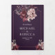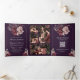 Dark Purple Moody Floral Frame QR Code Wedding Tri-Fold Invitation