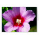 This card features a dark purple Rose of Sharon, althea, Hibiscus syriacus, bloom. Symbolic meaning immortality. The Rose of Sharon is national flower of South Korea.