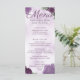 The layout is clean and thoughtfully designed for both beauty and readability. Most of the text is in a modern block font that makes each course clear and easy to follow, while the word Menu is featured in an elegant script font that adds just the right amount of softness and flair. All text is rendered in a deep, dark purple to match the floral elements, creating a cohesive and visually striking design.