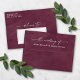 Watercolor in Dark Sangria Purple A7 5x7 inch Wedding Envelopes (other sizes to choose from). This modern wedding envelope design has a beautiful watercolor texture, and bold colours that are perfect for winter. Shown in the Sangria colorway. With a gorgeous signature script font with tails, the ethereal watercolor wedding collection is sure to make your wedding memorable and beautiful!