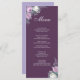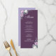This dark purple wedding menu card features white and purple watercolor peonies, lavender, geometric shapes, and elegant modern typography. Ideal for an outdoor wedding. Find matching items in Lavender Purple Floral Wedding Collection.