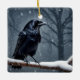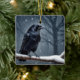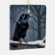 Black Raven Bird sitting on a tree branch on a dark snowy winter night. #raven #blackbird #ornament