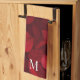Dark Red Abstract Leaf Pattern Kitchen Towel