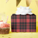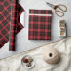 A wrapping paper designed with a dark red and black plaid pattern. Customize the dark red background colour among other options.