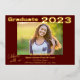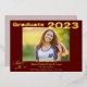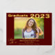 Simple photo graduation invitation with a dark red / maroon background and true gold foil for the text. This graduation card has room for 1 picture and can be 100% personalized. If you would like to add more text or other information feel free to use the back of the card by editing it with the editing tool rather than only filling in the templates. Make it uniquely yours!