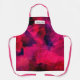 Apron with a cool abstract background. Dark red and purple brush strokes create a bold modern vibrant design. A rectangle layered over top with a personalized text inside.