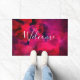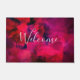 Welcome door mat with a cool abstract background. Dark red and purple brush strokes create a bold modern vibrant design.