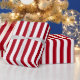 Wrapping paper with a dark red and white stripe pattern. Perfect for any occasion. Customizable.