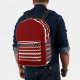 Elevate your style with this Dark Red Chevron Backpack! Featuring a bold dark red base and a front pocket adorned with a white and red chevron pattern accented by thin gold lines, this backpack combines elegance and modern design. It includes a main zip compartment, front zip pocket, adjustable shoulder straps, and a black side mesh for practicality. Perfect for school, work, travel, or everyday use, it’s a versatile accessory that blends fashion and functionality effortlessly.