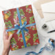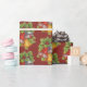 A vintage style Christmas wrapping paper with a colourful cluster of bells with pine and holly on a dark red background. Great for an old fashioned look for your holiday gifts.