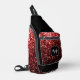 Dark red faux glitter sparkles Black Monogram Sling Bag