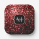 Dark Red faux Glitter sparkles Glamour Monogram Paper Plate