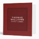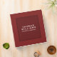 The dark red leather binder with customizable light pink typography is a stylish and sophisticated choice for organizing personal or business records. Its modern design is sure to leave a lasting impression.
