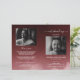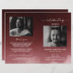 Funeral memorial program featuring on the front a photo of the deceased, thier name, dates, the memorial venue, date of the event, and elegant frame. On the inside is an obituary, and order of service; and on the back another photo, a thank you note and the second venue for after the funeral.