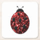 Dark red ladybug faux glitter sparkles square paper coaster