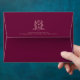 Dark wine red with inside white and light peach coloured hand-drawn growing leaf and berries botanical line art around a crest topped with a heart crown monogram wedding envelopes. Personalize with your own monogram initials and return senders address ideal in case if your mail gets lost or guests have moved address. Other colours and matching items are available. © Original hand drawing and design by Sarah Trett for www.mylittleedenweddings.com on Zazzle.