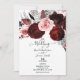 Dark Red & Pink Floral Greenery White Wedding Invitation