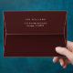 Elevate your holiday greetings with our custom pre-addressed envelope, a blend of elegance and convenience. The interior boasts a classic dark red tartan plaid pattern, adorned with lavish gold accents, setting the stage for your heartfelt message. On the outside, the deep red envelope exudes sophistication, providing a dedicated space for your recipient's address. The flap showcases a customizable return address, seamlessly fusing personalization with tradition. Make your well-wishes stand out from the start, enveloping your holiday correspondence in style.