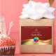 The design features a noble shimmery wavy gold decoration with soft glitter stars and a dark red background.