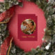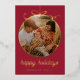 Dark Red Whimsical Ornament & Bow Photo Foil Holiday Card - all text is editable