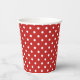 Red paper cups with a pattern of white polka dots to complement your party table decor. Illustrated and designed by Patricia Alvarez.