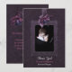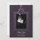Dark purple damask set a rich tone for this delightful goth themed wedding Thank You. A matching border with beautiful detail frames your photo. Lovely rose with a sprinkle of dark glitter add a special touch on front and matching card back. All text front and back is fully customizable by you.