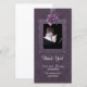 Dark purple damask set a rich tone for this delightful goth themed wedding Thank You card. A matching border with beautiful detail frames your photo. Lovely rose with a sprinkle of dark glitter add a special touch. Upload your photo to replace this photo placeholder. Text is ready for you to customize with your information.