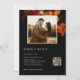 Colorful painted flowers and bride and groom names in an elegant classic calligraphic script on a black background wedding invitation. With your photo and a scannable qr code on the backside.