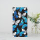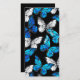 Realistic, blue and white butterflies seamless pattern on black background.