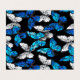 Realistic, blue and white butterflies seamless pattern on black background.
