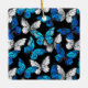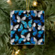 Dark Seamless Pattern with Blue Butterflies Morpho Ceramic Ornament