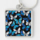 Dark Seamless Pattern with Blue Butterflies Morpho Keychain