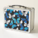 Dark Seamless Pattern with Blue Butterflies Morpho Metal Lunch Box