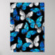 Dark Seamless Pattern with Blue Butterflies Morpho Poster