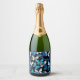 Dark Seamless Pattern with Blue Butterflies Morpho Sparkling Wine Label