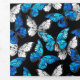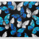 Realistic, blue and white butterflies seamless pattern on black background.
