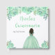 This Quinceanera guest book features faux glitter mint green floral flowers and a beautiful princess with dark skin and an elegant dress. This is perfect for a Quinceanera birthday party.