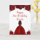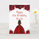 Dark Skin Princess Red Floral Birthday Card