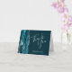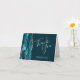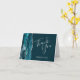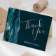 This elegant modern wedding thank you card features a teal blue watercolor agate border trimmed with faux silver glitter. The customizable text combines the words "Thank You" in silver grey handwriting script and the names of the bride and groom in italic font on a dark teal blue background.