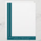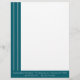 Classic, simple, and elegant, this letterhead features dark teal borders down the left side and on the bottom, with two narrow silver stripes down the left side. Information for the business is at the bottom in silver text. Very sharp, professional, and timeless, and easily adaptable to a variety of businesses and professions.