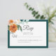 Dark Teal Burnt Orange Rustic Fall Wedding Floral RSVP Card