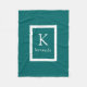 Personalized custom monogram or name in white with a dark Teal Green colour background for cozy fleece blankets - chose your size of blanket. Personalize your gift by adding your own name, childs name, family name, monogram or initials. This modern cute elegant chic design or pattern will enhance any home decor, living room, sofa, lounge, bedroom, office, boat or university or college dorm room, teenagers, nursery, girls, boys, or kids rooms. This blanket is a perfect gift for College, Christmas, Wedding, Birthday, Engagement, or for someone you love. Choose your own font and colours to make it your own.