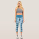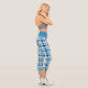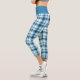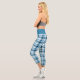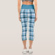 Dark Teal Light Blue White Plaid Tartan Check Capri Leggings