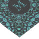 Bring vibrant, calming energy into your home with this eye-catching table runner. The design features an intricate mandala pattern with a mesmerizing radial symmetry in shades of turquoise and teal against a dark, nearly black background. The mandala design is made up of delicate floral motifs and flowing lines that radiate outward like petals, creating a sense of depth and motion.