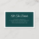 Dark Teal Simple Elegant Script Wedding Detail Enclosure Card.